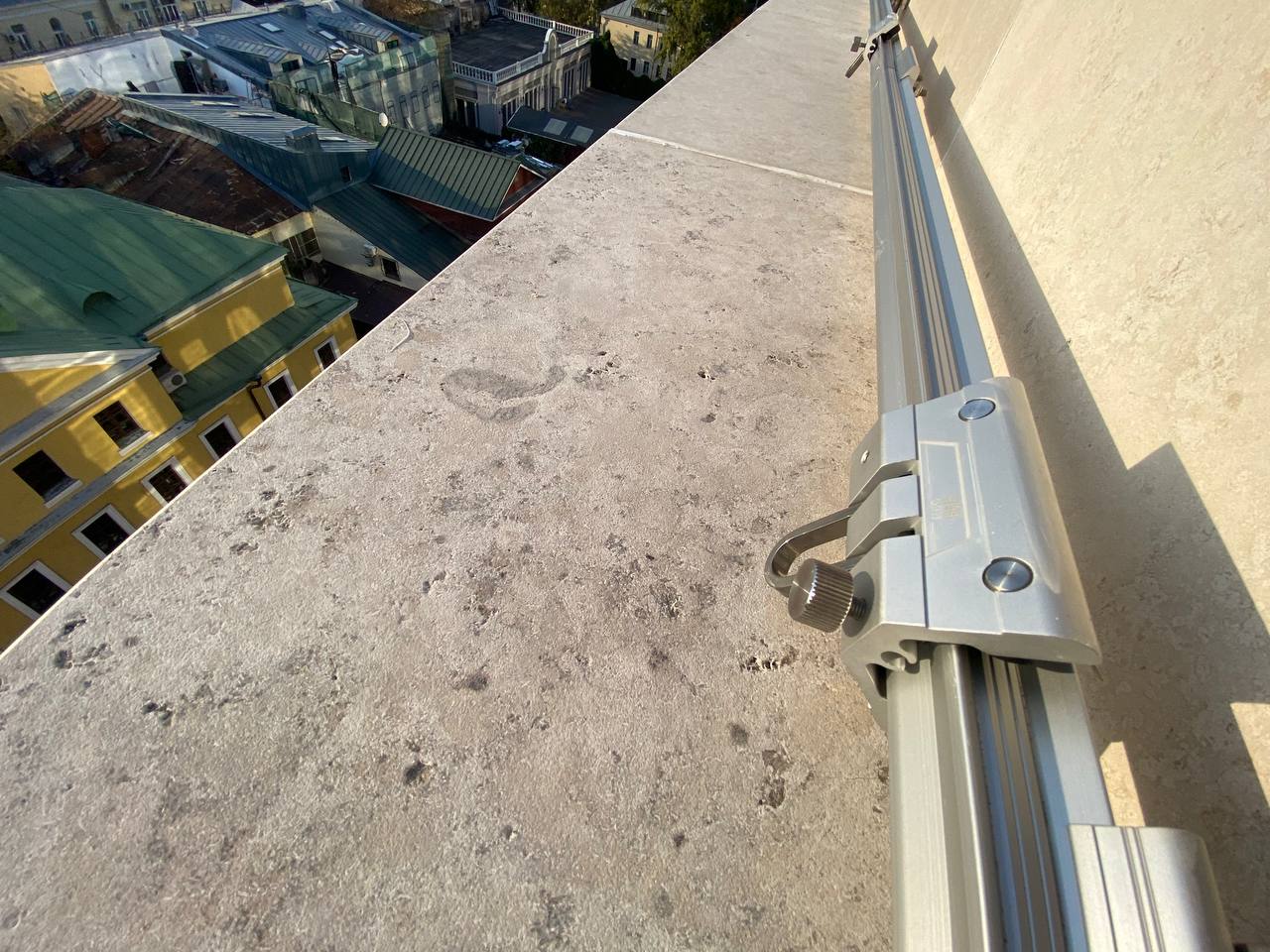 Универсальность. Рабочие устройства могут быть установлены на различных типах фасадов и крыш, имеющих такие элементы, как: карнизы, ниши, геометрию с отрицательными углами. Конструктивные особенности дают возможность проводить работы на фасадах зданий, не затрагивая эксплуатируемую кровлю.